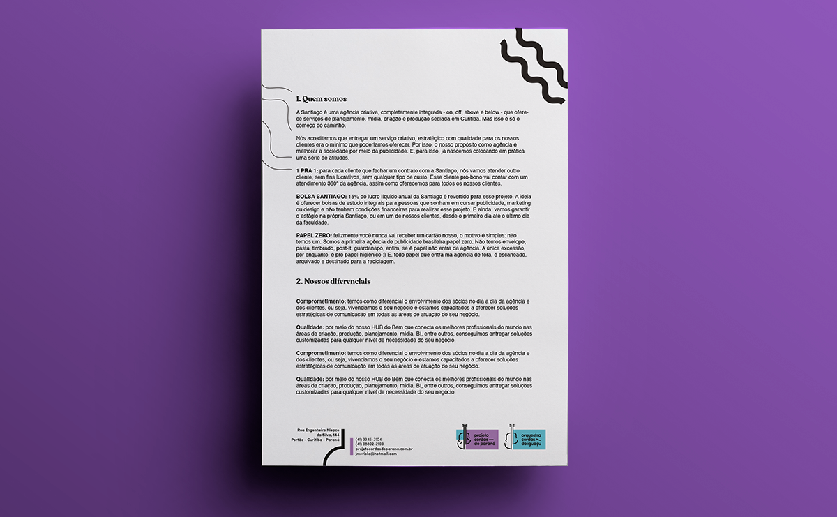 Como Head de Arte da Santiago, estou envolvido diretamente em todos os trabalhos da agência. E parte da política da agência é ter metade de sua demanda vinda de clientes pro bono, ONGs e afins. Nos 2 anos e meio aqui já construí marcas para clientes que jamais teriam oportunidade de obter comunicação de qualidade, esses são alguns deles.